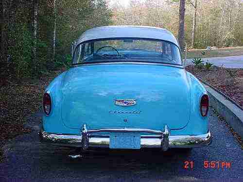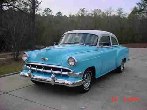 1954 Chevrolet coupe for sale. This is a 2 door model 150 recently frame on restored . The car still has the six volt electrical system and is a radio delte car. The dash is nice and has not been butchered up. Interior is decent with no tears or rips, good headliner, fair carpet, a little faded but intact, seats look good and serviceable, etc. etc. This car is powered by a 235 blue flame inline six cylinder engine with ample power and a standard three on the tree tranny that shifts just as it should. The car is a daily driver and it is all original with the exception of a set of Cragar old style wheels that I bought and put on it, it just to enhance the look, I have the original wheels and hubcaps if the buyer wants them. The floor pans and trunk area seem to be in good shape and solid. The car is a blast to drive and get's a lot of looks when I'm riding around town. I included quite a few photos for you viewing but if you have questions I am available to answer them in a timely manner. If you are looking for a nice old cruiser that is sharp then give me a call. There are not many of these old 2 doors left that you can get in and drive away. I know what the car is worth and I have set a decent reserve so look it over and let me know if you're interested, I appreciate your bids. I expect a $500.00 deposit within 3 days of the auction end and all remaining funds within 10 days. I accept cash, wire transfers, or cashier's checks but, the car nor title will be handed over until all funds are accounted for. Please email through ebay messages or call (850) 683-1142 or cell, (850) 305-6209.