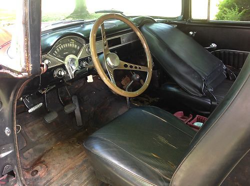 1955 Chevy Bel Air. Garaged since 1992. Runs good and can be driven. Drive as you complete to a level of your choice. A great foundation to build upon. 350 Chevy motor, Holley 4 bbl., Headers, 3 speed manual trans. with Hurst shifter, 4:11 Posi rear. Cragar S/S Mag wheels. Everything is in working condition; lights, horn, turn signals, wipers, windows, & brakes. Some amateur body work was done on roof and left rear quarter panel. Needs weatherstripping, and interior needs work.