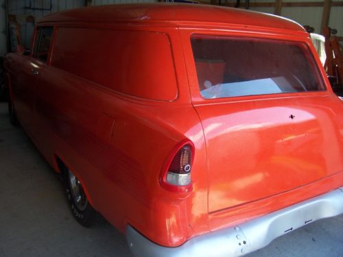 selling my 1955 chevy sedan delivery to help buy a 57 chevy 2dr,this car runs and drives but needs some finishing touches,most all interior new custom,tan and orange,has a rebuilt 350,and 350 turbo,.has a 1 peice tilt front end in fiberglass,body is very solid,has custom 69 camaro hugger orange paint with flake,about 12 years old,have clear title in my name,very cool old car,hasn't been on the road for over 15 years.just never got it finished.see my other auction for a fast 68 camaro racecar,bad azzzzz car. very low reserve,almost 30k invested.reserve much lower.