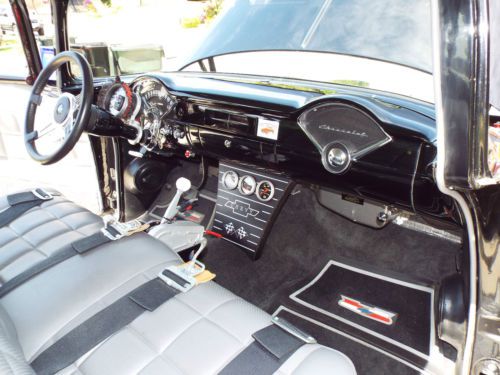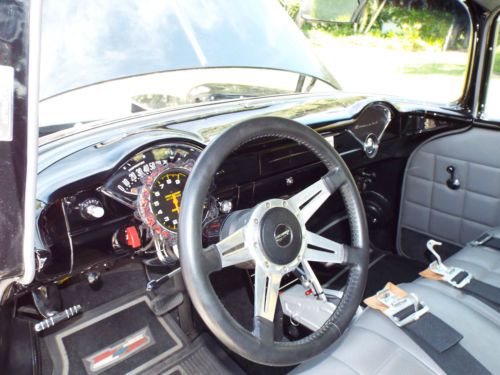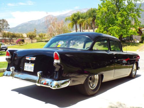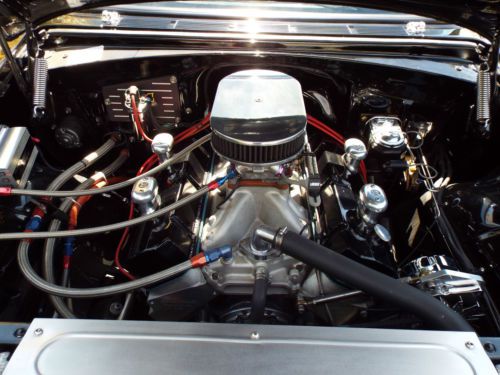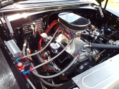 1955 Chevy 150 Post Engine: Professionally built 454, steel crank and rods, Keith Black pistons, gear drive, Edelbrock aluminum heads and manifold, solid roller comp cam, roller rockers and much more. Trans:Tubo 400 with 3200 Stall, Currie 9 inch rear with 370 gears and Strange Axles. Suspension: Tubular upper A arms, QA1 adjustable coil overs, 2 inch drop spindles, 11 inch front discs with SSBC calipers, 7/8 sway bar, Posies springs relocated inside frame, Lakewood traction bars Wheels: American Torque Thrust II front: 6X15 rear 10X15 Tires: Mickey Thompson front: 7.50X15 rear: 12.50X15X29 Paint: Laser straight body, deep black beautiful paint Complete Frame-off restoration. California rust-free body. You won't be disappointed! |