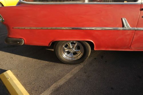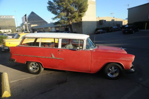 Nevada Car Dealer 40229, Stock # HRC552 - This is your chance to own a rare 1955 Chevrolet 210 Two Door Station Wagon. This is a great project to Restore or Rat Rod.... most of the hard & expensive mechanical work is already done.. with a newer and fast & solid 350 motor, with Auto Trans & new shifter. and get this... the last owner spent $2500 to add ICE COLD Air Conditioner ... the coldest I have ever felt ! The car also has been upgraded with custom TILT steering wheel, killer stereo with two big speaker boxes in back and MP3 plug in... recent additions also include electric fan and chrome radiator overflow to keep this baby running nice and cool. Cragar Chrome wheels, new gas tank and Flowmaster exhausts.... I also had my mechanic go over it and fine tune things like adding new valve cover, oil pan and tranny pan and rear end gaskets, so it does not leak barely a drop !