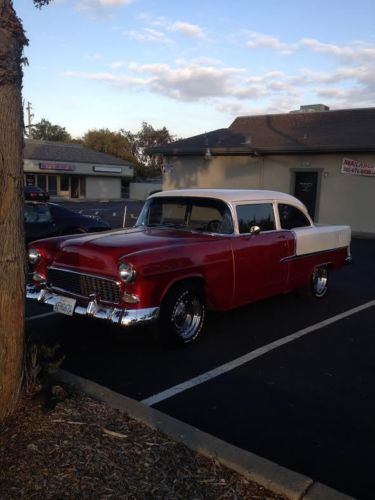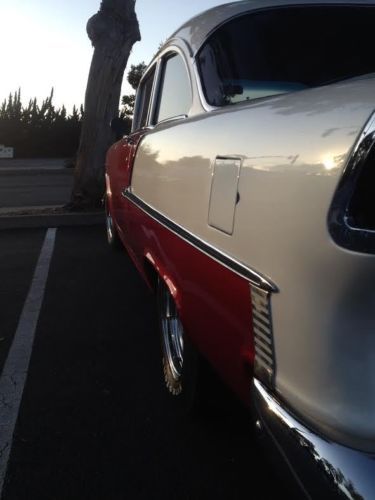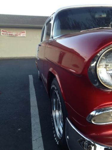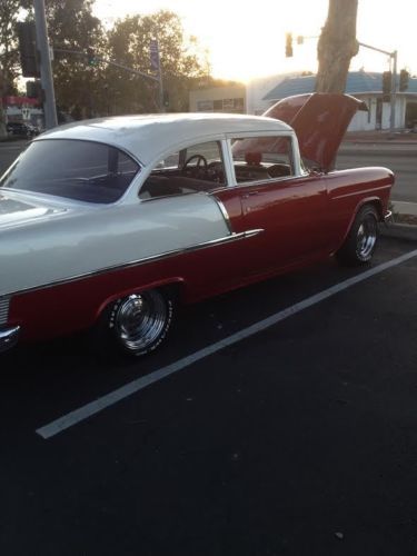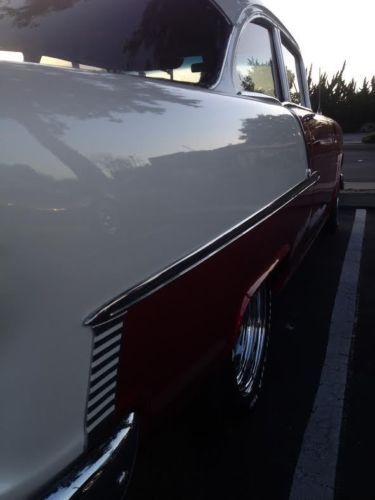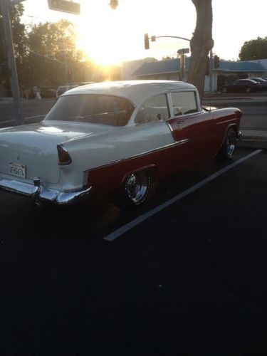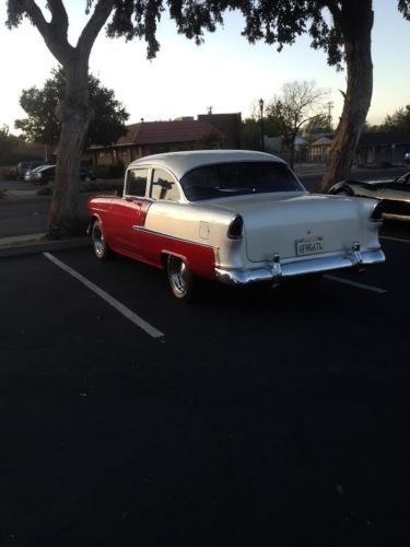 OK UP FOR SALE IS MY 1955 CHEVROLET 210 BEL AIR 2 DOOR POST ITS GOING FOR A 5 DAY AUCTION AT A LOW PRICE THE CAR WAS FULLY RESTORED ABOUT 9 YRS AGO FRAME UP ALL DONE IN CANDY APPLE RED AND PEARL WHITE WHIT GRAY INSIDE POWER STEERING POWER BRAKES AFTER MARKET A/C BLOWS COLD NEW TIRES RUNS AND DRIVES GREAT FULLY REBUILT 350 MOTOR AND A 400 TURBO AUTOMATIC TRANSMISSION WHIT LESS THEN 10.000 MILES SO YES THE CAR RUNS VERY GOOD ALL LIGHTS AND GAUGES WORK WE ARE THE 2ND OWNER WE OWNED THE CAR SINCE 1990 NO RUST AT ALL SOLID FLOORS AND FRAME AND BODY ALL ORIG PANELS CLEAN TITLE BODY IS VERY STRAIGHT NO DENTS AT ALL HEAR IS THE VIN VB55K078857 PLEASE ONLY INTERASTED BUYERS PLEASE DONT WAST MY TIME AND I WILL NOT WAST YOURS IF YOU ARE THE WINNING BIDDER PLEASE CALL ME ASAP AT (925)695-5645 vincent the car is located in concord ca its about 30 miles from san francisco