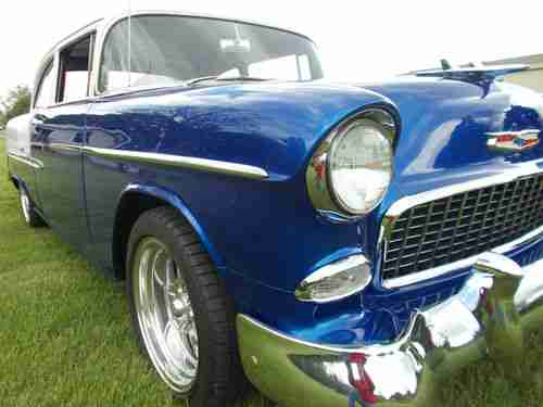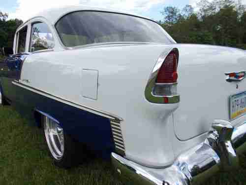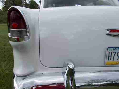 This 1955 Chevy is being sold from my personal collection of cars. The restoration was completed four years ago. Along with the labor sheets I have receipts for over $10,000. dollars of new sheet metal and chrome trim. Pictures document he process from start to finish. PPG paints, primers and products were used throughout the car. You will NOT find this vehicle full of putty and filler. There is over 200 hours of mechanical workmanship including the engine, electrical, suspension and exhaust. The rebuilt 350 engine has a mild cam and a 350 automatic transmission with a B&M slap stick drives the vehicle.