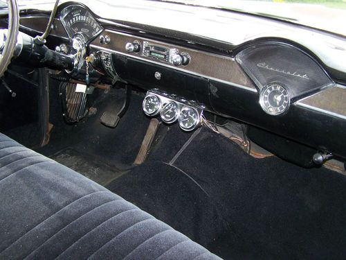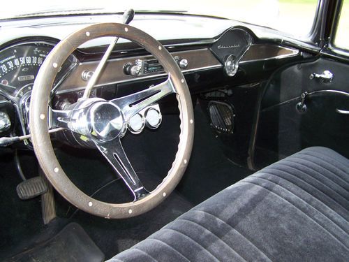 I HAVE HERE A 1955 CHEVY THAT I TOOK IN TRADE FROM A GUY THAT HAD IT 12 YRS.........HE GOT A ANOTHER CAR HE WANTED SO IM SELLING THIS ONE.......THE OUTSIDE IS VERY STRAIGHT AND SOLID......THE INSIDE WAS DONE A WHILE BACK AND ITS GOOD TO........HOW MUCH WORK WAS DONE PRIOR YRS AGO I DON'T KNOW........I PUT IT UP ON A HOIST AND LOOKED AT IT AND THE FRAME IS REAL GOOD ......INSIDE OF THE ROCKERS THERES SOME RUST AND HERE AND THERE BUT NOTHING THAT HURTS THE DRIVING OF THE CAR........IT DON'T HAVE POWER STERRING BUT IT DON'T HANDLE BAD AT ALL.......FRONT END IS NICE AND TITE.....THE GUY ALWAYS TOOK IT AROUND TO LOCAL CAR SHOWS AND ENJOYED IT.........A TOY FOR SOMEBODY TO ENJOY..........315-323-1774......THANKS