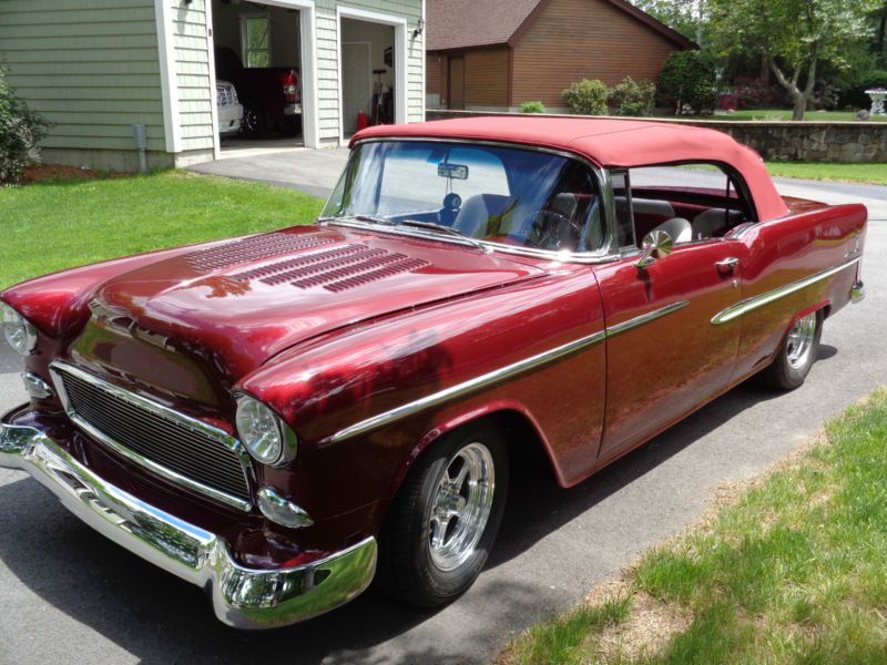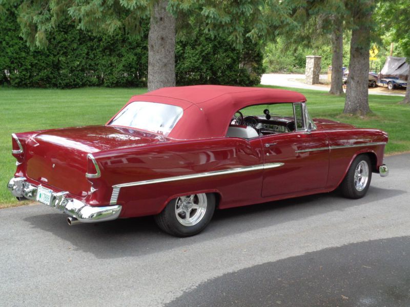 1955 Conv Frame Off Restoration Finish In July 2014 Only 500 Mi On Car. ( Motor) Compleat Rebuild Pro Build Goleng Engine Service Out Of Hudson N.h. I Do Have Dyno Sheet 434 Hp And 516 Of Touque And 3 Year Warranty Mother Tumber Cam 570 Lift. Roller Rockers, Steel Crake,kith Black Pistons,steel Heads Large Over Port All New. ( Trans ) Turbo 350 Total Rebuils. Rear End Is A 1985 Corvett Rebiuld With 373 Gears. (front End ) Total Rebuild Tube A-arms With Qa1 Shocks,new 500 Power Steering Box. All New Ball Joints, Tie Rod, Disk Brakes ,bushing Etc.new Billet Spec Street Lite Rims And New Tires. This Car Drives Better Then A New Car. ( Body) Strip Down To Metal All Sheet Metal Was In Grate Shape No Rust At All Same With Frame. New Ppg Base Coat Clear Coat. New Inner Wheel Wells, Radiator Support And Alum Raditor .new Direct Fit Aircondition And Heat Kit.