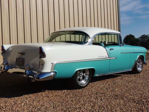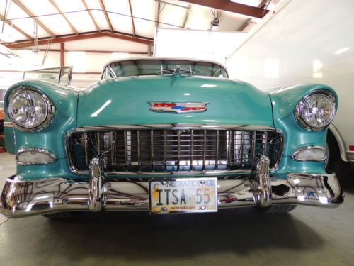 I am listing this very nice 55 for a friend of mine... If you have any questions call: Bill At 308-633-2055 WORK After 5pm 308-641-7592 1955 Chevy Bel Air 2 Door Hard Top - Regal Turquoise & India Ivory Total Frame Off Rotisserie Build 12,000 miles CCI Rated 979 Platinum GM Crate Motor 330 hp 350 w/650 Holly Carburetor 700 R4 Transmission 355 Positrac Rear-end Unisteer Rack & Pinion Steering Sanderson Ceramic Coated Headers Flowmaster 50’s Mufflers 3 inch Custom Exhaust 2 inch Front Drop Spindles Front Disc Brakes External Electric Fuel Pump Air Conditioning by Vintage Air Air Front Runner System by Vintage Air Specialty Power Windows Custom Italian Leather Interior LED Front Park Lights LED Tail Lights LED Interior Lights Halogen Head Lights American Autowire Wiring Harness Custom Radiator & Cooling Fans by Performance Rod & Custom Cruise Control Pertronix Electronic Ignition Custom Rod Gauges IDIDIT Tilt Steering Column Lokar Throttle Cable Raingear Electric Wipers Torque Thrust Wheels Optima Battery in Trunk Weekdays: 308-633-2055 ask for Bill |