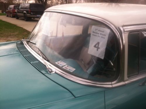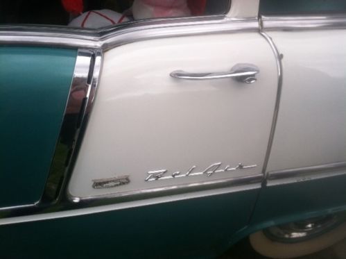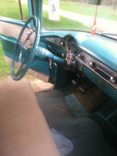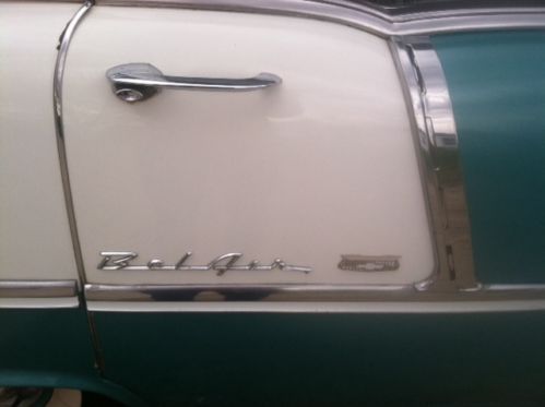 1955 Chevy Bel Air 4 door sedan in stock teal and white. This car is all original - it has only 7,772.5 original miles!! Clear Michigan title. Muskogee, Oklahoma is the location that the car was originally sold in. The car runs and drives very nice with no known mechanical problems. The interior is excellent with the exception of the carpet on the front driver's side - please see photo.