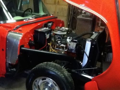1955 CHEVY SHORTY, SHORTENED 30 INCHES. JUST COMPLETED. CAR HAS NEW WEATHERSTRIP,WHEEL CYLINDERS AND SHOES ON REAR, AND `$ 500.00 DISC BRAKE CONVERSION WITH NEW CALIPERS AND ROTORS ON FRONT, PLUS ALL NEW LINES, BOOSTER AND MASTER CYLINDER. NEW TAIL LIGHT ASSY, DOOR HANDELS,WIPER ARMS AND BLADES, GAS TANK AND FUEL LINE, REBUILT SMALL BLOCK CHEVY ENGINE WITH ENOUGH CAM TO GIVE IT THAT DESIRED LOPE, 202 VALVES, ALUM INTAKE WITH BRAND NEW ELDENBROCK CARB, NEW ALUM RADATOR WITH DUAL COOLING FANS, HOOKER HEADERS AND FLOWMASTER MUFFLERS. HAS 350 TURBO TRANNY WITH SHIFT KIT. . THE BODY IS SHORTENED 30 INCHES, BUMPERS HAVE BEEN WELDED TO MAKE THEM 1 PIECE, CAR HAS A 1 PIECE FIBERGLASS TILT FRONT END. UNLIKE NORMAL TILT FRONT ENDS THAT ARE A PAIN TO TILT, THIS ONE HAS METAL FENDER AND HOOD SECTION (SHOWN IN PICTURES} BONDED TO THE INSIDE TO GIVE IT ENOUGH STRENGTH COMBINED WITH THE GAS SHOCKS , ROLLERS TO KEEP SPACING FROM BODY WHEN OPENING AND CLOSING AND THE SELNOID OPERATED BEAR CLAW LATCHES TO ALLOW ONE PERSON ONE HANDED OPERATION. CAR HAS NEW PAINT. ALL THE STAINLESS HAS BEEN POLISHED. ALL NEW WINDOW CHANELS AND FUZZIES. ALL NEW WIRING WITH A 18 CIRCUIT FUSE BOX. THE CAR HAS RALLY WHEELS THAT HAVE NUBS WELDED ON THEM SO YOU CAN RUN THE STOCK 55 HUB CAPS (THAT COME WITH THE CAR) IF YOU PREFER THAT LOOK. THE INTERIOR HAS CUSTOM DOOR PANELS, ALONG WITH THE CUSTOM PANEL BETWEEN SEATS AND THE TRUNK. HAS POWER DRIVER SEAT, LIGHTED VANITY MIRRORS AND OVERHEAD CONSOLE, NEW CARPET. THE TRUNK IS ALSO FINISHED. I AM RESERVING THE RIGHT TO END THIS AUCTION EARLY. MY CONTACT #S ARE 812 584 2313 7-7 812 432 5916 7-11 PM |