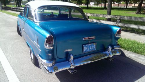 Bidding on my 55 chevy two door sedan this is an older restoration but with a lot of brand new parts that I have invested, mec told me that engine and trans is 350 from a 78 or 79 camaro, power front disc brake with a brand new power booster chrome, all the trim is new grill, side fenders trim and door trim as well the rokcer panels trim and gravell guards, also the hood and trunk emblems and the hood airplane new, taillights trim chrome new trim and lenses new, also the front signal chrome trim and lenses new and the headlights trim chrome new , the four set of aluminum american racing wheels new, trans pan engine pan chrome new no leaks, valve covers with the 350 emblem chrome new headers cover chrome new, air filter chrome new, four barrel elderbroke carburetor new, electronic distributor system new, all the interior chrome is new dash trim, gauges ,gauges trim and clock trim new (clock is not working), reproduction radio with iPod aux new , steering wheel aluminun and leather new, and steering column chrome new, all the gauges new, gas tank new, front lower kit springs and shocks new, power steering box cpp 500 series new,interior complete redone new seats rear bench seat and door panels and visors new, except headliner, upgrade to interior chrome trim,all the interior window handles new the ventwindos new, the front seats are power seats but are not conected does not have the switches but in good working condition we tested when I installed the seats and needed to be positioned, trunk mat new, recent tune up, and ac check up works perfect, new rain shields and door protectors original gm accessories also I added the bumper extensions front and rear nice original gm parts and expensive, new muflers extentions, new door handlers and door handles protectors , these are all the good things, I might forgot to mention somethings else, now the bad things paint is not perfect still looks very nice but have some bad spots chips and cracks in some small areas, have some rust on the driver door lower part and also on the roof driverside as i stated these chevy I would said is just a few steps to be a show car please check the pictures if you have any questions pls email me, bidders with negative feedback would be canceled, a $500 NON REFUNDABLE DEPOSIT is required within the next 24 hour period after auction ends, balance must be paid in cash in person money order or cashier check, has a small dent on the driver rear top fender due to a piece of tree fell on top of it. GOOD LUCK TO ALL BIDDERS this is a very desire classic car, ...any question email me, winner responsible for shipping car is located in Miami fl,