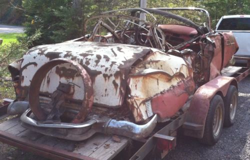 This 1955 Chevy convertible was wrecked, stripped, and left outside for decades. No driveline and front end was stripped down to the spindles. No seats. The rest of the interior is shot. Dash was cut at the windshield line and stripped. Car hit a tree or pole on its right side at the back of the door; wrecked door and smashed the rear quarter back. No hood. Driver door is salvageable, was cut off thru hinges w/torch and is held in place with a ratchet strap for photo and transport. Rear quarters are rather smashed up-you'll likely want a donor car. The good: A rare find for a project and everything is fixable. A real convertible, has vin tag and original cowl tag and a fresh, clean MI title. Has a good x-member frame under it. Has most convertible specific trim; is missing a piece on right side of the windshield frame. Has its convertible top frame -it will need some repair from collision damage but it looks to be all there. It's rough as photos show but has the important parts for a convertible restoration or, if nothing else, has a cowl and tags to use for a new replacement body. I will take more pics if desired, just let me know what you want. Car is currently on a trailer and takes some work to move without wheels but that's nothing a power winch can't handle. Delivery is possible, at your expense. Car is for sale locally as well so bid early to keep it here instead of an early closing. On Jun-13-14 at 16:10:41 PDT, seller added the following information: Potential local buyers backed out- item will sell here. |