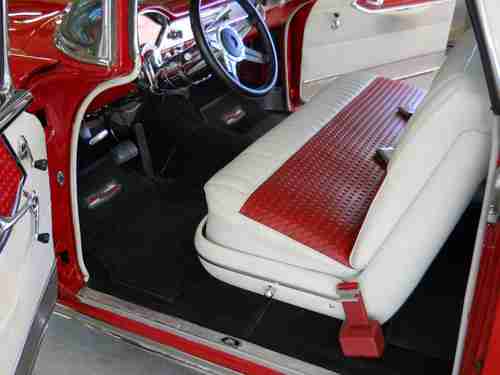 This is a beautiful '55 Nomad that has had a mild custom restoration. The exterior and interior (except for the wheels) are as it came from the factory. The car is knee deep in base coat, clear coat red and shoreline beige paint - it's like looking into a painted mirror. The interior is new and duplicates the original pattern and material. The chrome and side moldings are originals that have been replated and are as nice as I've seen. The bumpers have the accessory chrome overides and tips. All of the trim is near perfect. Even the pot metal side moldings are replated originals - not reproductions. It has a new 383 crate motor with automatic transmission. The car has modern disc brakes and a polished tilt power steering column. It has new suspension parts including new dropped spindles and new rear springs. The new fuel system includes a new fuel tank. It also has a new aluminum radiator. The car has options I'm sure I haven't listed. As you can see in the pictures I have a set of Boy's and Cragar's wheels. Either set goes with the car. Your choice of one set.