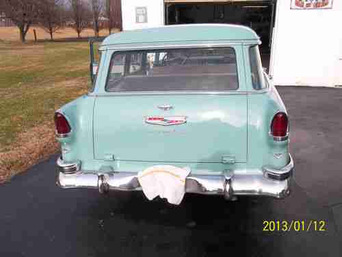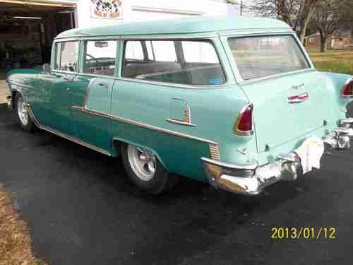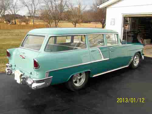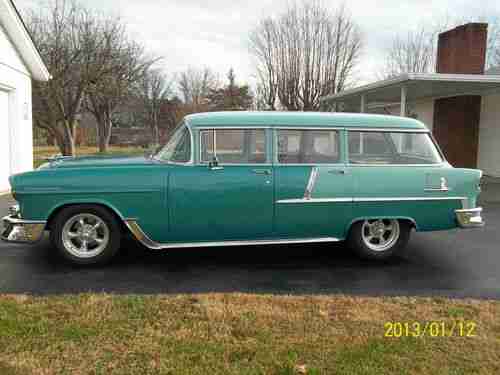 1955 Chevrolet Station Wagon. The engine is a 350 crate motor with about 5,000 miles on it, Street Dominator intake, Edelbrock carb, Sanderson headers. 350 Turbo Transmission acts up sometimes going into 3rd gear. Vintage Air and Heat. Power Disc Brakes, In dash AM-FM with 10 disc CD Player. All glass is good, and has a new tinted windshield. Eagle Alloy wheels with almost new tires. Very nice chrome with accessory bumper ends and grill guard. Gas and temperature gauges work, speedometer stopped working last week . The paint is over 10 years old and has a few chips but still looks good. Look the pictures over and ask any questions you may have. Car is located in Church Hill, Tn. 37642. It is for sale local and I may end the auction at anytime. A non- refundable deposit of $500.00 by PayPal is due within 24 hours and the balance in 7 days. All funds must clear before the car goes anywhere. This is a old car sold AS IS no warranty. Buyer must make your shipping arrangements.