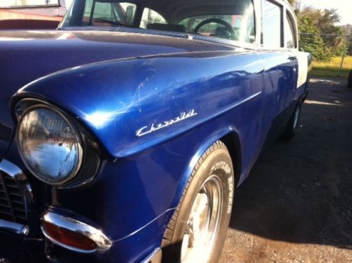 OK HERE WE GO.... This is a sweet 55 still in the making.It has chevy v/8 with performance cam dual intake dual carb set up, has turbo auto trans, has fresh base clear paint, the blue is blotchy needs to be redone. silver is presentable ( car started out with minimum rust issues ) all body mounts braces and floors frame are all excellent and painted semi gloss black, faded now but looks good... the car has power steering chrome upper and lower control arms, all bushings and front suspension parts replaced. the interior is nice gray vynle and cloth, it was redone a while back carpet shows some wear and some blue overspray from door jam, paint still looks very good. front seat is not original, (but does have complete newly recoverd 55 factory split front seat with it)..... new side covers for seats in the trunk car has headers with dual exhaust out back, also has power four wheel disc brakes with dana rear differental, chrome bumbers and emblems all were replaced. still very nice. no pitting some very small scratches. airplane on hood. front light bezels. grill ouside housing all excellent..we also have all the side molding in the car.... glass is all in good condition. car runs/ drives/ stops and steers very well...... also upgraded gauges in factory cluster... aluminum wheels need good polishing! tires very good but should be replaced... its a little bit to finish but when done will have one heck of a nice 55!!!! The Bottom line is alot has been spent and done to this car...It came back with crap paint job... owner lost interests and now here it is for someone to have at it !!!!!!!!!!! Thanks For looking... Pete and Kim 1-386-383 9562 or 1-386-679-0069 we can arrange shipping if needed.I will work with your shipper or store for short time.......... Thanks again |