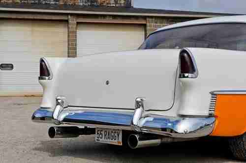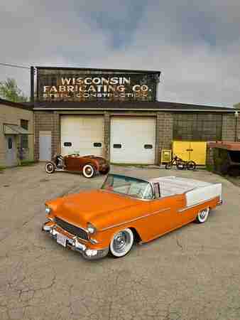 Up for auction is a one of a kind custom 1955 Chevrolet Bel Air 2-door hardtop/convertible. Featured on the cover of Rod & Custom Magazine, October 2012, with a multi-page article. Look at the pictures, this is a true hardtop/convertible where the hardtop has been expertly cut off and then refitted to the car so that it lifts off, creating a convertible. The bodywork to accomplish this took months and to most observers it is nearly impossible to detect. Careful cutting and fitting conceals the parting lines under the stainless window trim. When the top is removed, custom made spears connect the window trim to disguise the fact that a top fits there.