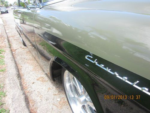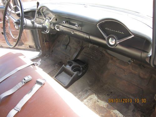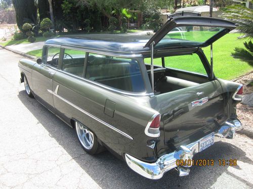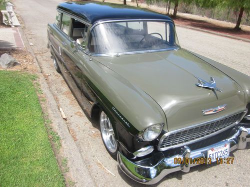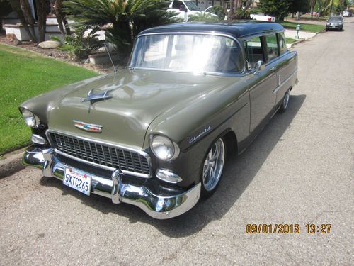 UP FOR YOUR CONSIDERATION IS A 1955 CHEVY WAGON 2-DOOR. CAR IS 95% ORIGINAL...I AM THE THIRD OWNER...265 V8 ORIGINAL MATCHING #..POWER GLIDE TRANSMISSION...RUNS VERY NICE WAS USED AS DIILY DRIVER...DOES NOT SMOKE, NO OVERHEATING, NO ENGINE NOISE...EVERYTHING WORKS, LIGHTS, BLINKERS, HORN...STILL HAS ORIGINAL STEERING WHEEL..ORIGINAL RADIO (NOT HOOKED UP)...BODY IS STRAIGHT I CAN FIND NO BONDO ANYWHERE...THERE IS A SMALL AMOUNT OF RUST IN TAIL GATE AREA I TOOK PHOTOS...CARPET WAS REMOVED & RUST REMOVED FROM FLOORBOARD AREA...INTERIOR NEEDS TO BE REDONE SEATS ARE NOT RIPPED UP...DOOR PANNELS, CARPET & HEADLINER HAS BEEN REMOVED...DOOR PANNELS & ARM REST HAVE BEEN SAVED...PASSENGER SIDE WINDOW HAS SMALL CRACK...THE CAR HAS BEEN DROPPED ABOUT 3-4" SOMETHING I DO NOT LIKE & MAY REMOVE THE LOWERING BLOCKS TO GET IT BACK UP TO NORMAL HEIGHT...CAR IS FREE & CLEAR TITLE IS IN HAND & REGISTERED THROUGH 2014...I DON'T WANT TO LIST EVERYTHING IF YOU ARE REALLY INTERESTED PLEASE GIVE ME A CALL & I CAN GIVE YOU ALL THE HISTORY OF THE CAR THE GOOD & BAD...951-741-5320-GARY