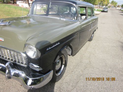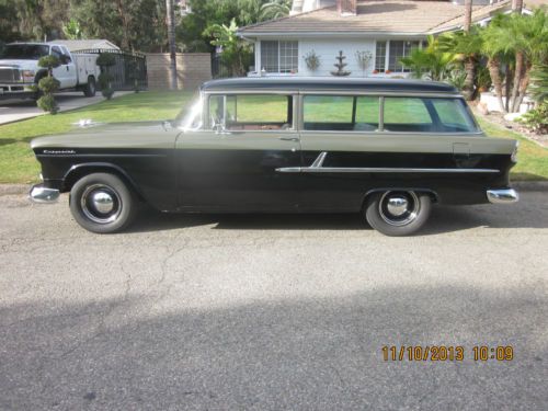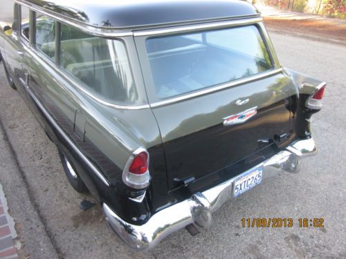 1955 CHEVY 2-DOOR WAGON GOOD RUNNING DAILY DRIVER...ORIGINAL 265 MOTOR, AUTOMATIC TRANSMISSION, NICE STRAIGHT BODY, SMALL AMOUNT OF RUST ON TAILGATE (YOU CAN SEE PHOTO)...NO OTHER RUST THAT I CAN FIND...NEEDS COMPLETE INTERIOR, ORIGINAL SEATS ARE THERE & THEY ARE IN DECENT CONDITION..DOOR PANELS, CARPET & HEADLINER HAVE BEEN REMOVED (STILL HAVE ALL DOOR PANELS)..ORIGINAL STEERING WHEEL, & RADIO (I JUST INSTALLED A NEW 55-CUSTOM FIT STEREO..10/23/2013 (NO DASH CUTTING)..& NEW DASH TRIM...4-NEW BF GOODRICH P235/60R15 T/A RADIAL TIRES W/NEW SMOOTHY RIMS & CAPS INSTALLED..10/21/2013 BY AMERICAS TIRE..NEW COIL SPRINGS, SHOCKS, LOWER BALL JOINTS, FRONT END ALIGNMENT..10/16/2013 BEAR ALIGNMENT & BRAKE...NEW ALUMINUM RADIATOR INSTALLED 10/20/2013...I HAVE ALL RECEIPTS & WARRANTY INFO...IT HAS AN OLDER PAINT JOB BUT STILL LOOKS PRETTY NICE...COLOR HUNTER GREEN & BLACK...I AM THE THIRD OWNER OF THIS CAR I PLANNED ON KEEPING BUT WITH ANOTHER CLASSIC CAR MY TRUCK & WIFES CAR I HAVE IT SQUEEEEEZED IN THE GARAGE MY WIFE IS NOT HAPPY ABOUT THE LITTLE ROOM! JUST DON'T HAVE THE ROOM TO PARK IT PROPERLY...BEFORE I GET TO THE INTERIOR I THOUGHT I WOULD SELL LET THE NEW OWNER DECIDE CHOICE OF INTERIOR IF IT DON'T SELL THEN I WILL GO AHEAD & DO THE INTERIOR & GO FROM THERE (WIFE MAY JUST HAVE TO DEAL WITH IT!!)...IT IS CURRENT WITH REGISTRATION & INSURANCE...THE CAR IS LOCATED IN CORONA,CA IF YOU WOULD LIKE TO COME SEE & DRIVE JUST CONTACT ME & WILL MAKE ARRANGEMENTS...THANKS FOR LOOKING |