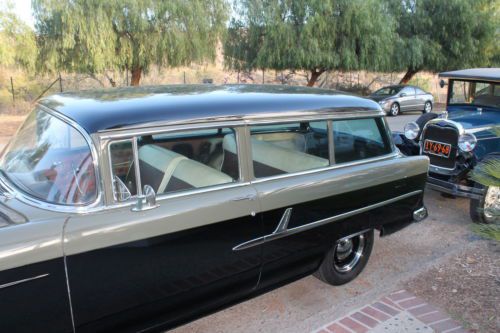 1955 CHEVY 2-DOOR WAGON..NICE OLDER TWO-TONE PAINT (BLACK & HUNTER GREEN)..RUNS EXTREMELY WELL I PURCHASED FROM THE SECOND OWNER & HE USED IT AS A DAILY DRIVER (I AM THE THIRD OWNER)...STRAIGHT BODY..SMALL AMOUNT OF RUST ON TAIL GATE (YOU CAN SEE IN PHOTO)..SOME RURT ON FLOOR WAS CUT OUT & REPLACED WITH METAL..COUPLE OF OTHER VERY SMALL RUST SPOTES ON FLOOR VERY MINOR FIX..NOTHING ON BODY...HAS ORIGINAL 265 V8 & ORIGINAL 2-SPEED AUTOMATIC TRANSMISSION...CARPET & HEADLINER HAS BEEN REMOVED..DOOR PANELS HAVE BEEN REMOVED (BUT ARE IN BACK OF CAR)..FRONT & REAR BENCH SEAT IS ORIGINAL WITH ORIGINAL UPHOLSTRY (THEY ARE DECENT NO MAJOR RIPS OR TEARS STRONG SPRINGS)..THE CAR WILL NEED COMPLETE INTERIOR DONE UNLESS YOU WANT TO PUT OLD DOOR PANELS BACK ON & JUST PUT HEADLINER & CARPET..I PURCHASED TO RESTORE & I JUST DON'T HAVE THE TIME OR PROPER SPACE TO DO SO I HAVE 3-OTHER CARS & AM REALLY TIGHT FOR SPACE!!..THE PREVIOUS OWNER WAS A YOUNGER KID WHO CUT THE SPRINGS, PUT BLOCKS IN REAR, LOW PROFILE TIRES WITH NOT MY STYLE RIMS!!...FIRST THING I DID WAS TOOK THE CAR TO BEAR ALIGNMENT PUT NEW SPRINGS, SHOCKS, NEW BALL JOINTS & ALIGNMENT..THEN TO AMERICAS TIRE PUT 4 NEW 235/60 BFG TIRES WITH SMOOTHY RIMS NICE OLD SCHOOL LOOK..ALL THIS WAS DONE NOV. 2013 ALL RECEIPTS AVAILABLE & CAN BE TRANSFERED TO NEW OWNER...TITLE IS CLEAR I HAVE PINK IN HAND...THIS CAR IS FOR SALE LOCALLY SO I RESERVE THE RIGHT TO STOP AUCTION AT ANY TIME..THE CAR IS IN CORONA CA 92881 FEEL FREE TO GIVE ME A CALL WE CAN MAKE ARRANGEMENTS FOR YOU TO COME BY DRIVE & INSPECT...951-741-5320..GARY