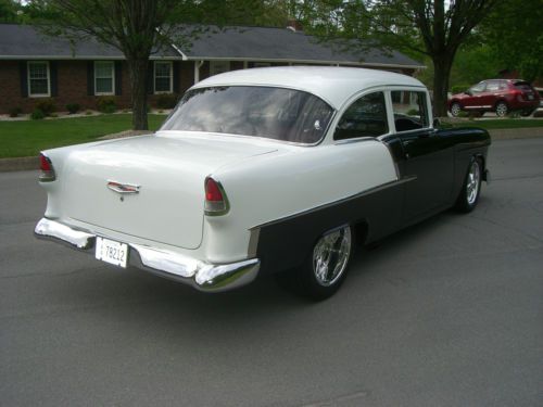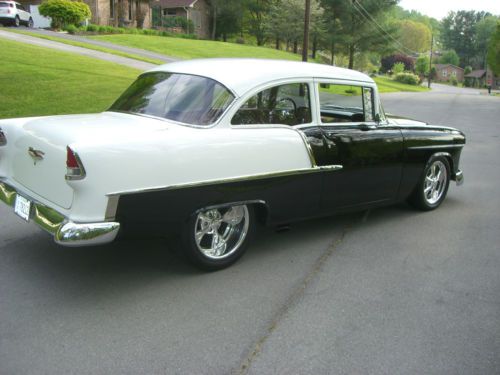 1955 Chevy 210 Post , SUPER SLICK BLACK paint and only the BEST Original (GM) Show Quality Stainless used to high light smooth body!!! Chevy LS1 Aluminum Engine with 4L60E Automatic Transmisson. G.M 7.5 Rear with Disk Brakes. BBK intake. Polished front runner belt system, Heidt's control arms and 2 inch drop spindles,QA1 adjustable front coilover shocks. Wilwood Master cylinder with power booster, polished calapiers on 12 inch cross drilled rotors, CCP power steering box , all this on a ( HIGHLY MODIFIED) seamless original calf. BLACK CHROME powercoated chassis. Car rolls on Billet Specialities Wheels (17f--18r ).. BORLA STAINLESS Exhaust , I used the best parts on the market ,no junk, Vintage Heat/Air unit, Painless wiring, Custom Stainless Radiator support with heavy duty aluminum crossflow radiator ,Cooling Components electric fan,, Neu-Relics power windows including vent windows, Auto Meter gauges. Custom Bumpers, Dynamat insulation and sound proofing, when with one of the Best Copper Leather Interiors the you will ever see. This is a TOP of the LINE 1955 Chevys around if you Want a Junker the IS NOT the car for you. This car will make you HAPPY!!!!! Call me if you have any questions htat I have overlooked at 423-767-5383 Gary Thanks |