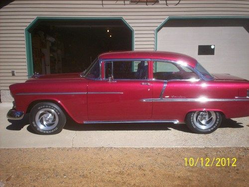 For sale is this 1955 Chevy Bel Air.Rotisserie restoration,This car was built for a show car.Car is very driver friendly. Chassis: A ll new suspension,A Frame,brake drums,mastercylinder,brake lines,ball joints,tie rod ends. Engine: 327-4 bolt rebuilt with all new parts,new headers,lots of chrome on motor,new 4 speed,T-10 BorgWarner transmission,rear end 338 ratio.Body: New glass,custom interior with front bucket seats,custom walnut console,all new body bolts on restoration.Cranberry wine DU Pont paint. This car has won many first place trophies as well as best of show trophies.Call 715-904-0793 for more info.I have more pics .