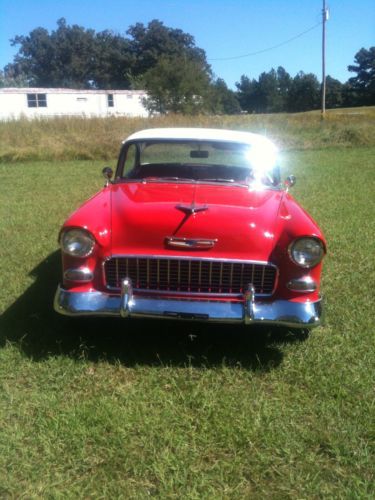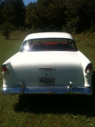 THIS 55 IS IN GOOD DRIVER CONDITION,HAS POWER STEERING,NEW SPRINGS AND SHOCKS ON FRONT,NEW DISC BRAKE CONVERSION KIT ON FRONT AND DRUMS ON THE BACK, HAS AIR SHOCKS ON THE BACK, A REBUILT 327 ENGINE BORED .040 WITH AN RV CAM,EDELBROCK 600 CFM CARB., NEW WATER PUMP, TURBO 350 TRANS. 17" AMERICAN RACING ALUMINUM WHEELS WITH PLENTY OF RUBBER, HAS HAD A RECENT PAINT JOB LOOKS PRETTY GOOD NOT PERFECT HAS SOME PAINT BUBBLES ON THE BOTTOM OF THE DRIVERS DOOR AND UNDER THE DRIVERS SIDE TAILIGHT,THE INTERIOR IS IN GOOD SHAPE,ALL THE GLASS IS GOOD WITH NO CRACKS,NEED A WINDOW REGULATOR FOR THE PASSENGER SIDE WING GLASS,ALL THE STAINLESS HAS BEEN CLEANED AND POLISHED, HAS HAD SOME PATCHES PUT ON THE FLOORS AT SOME POINT,ITS NOT IN PERFECT SHAPE BUT OVER ALL ITS A GOOD CAR,CALL WITH ANY QUESTIONS-870-378-3203