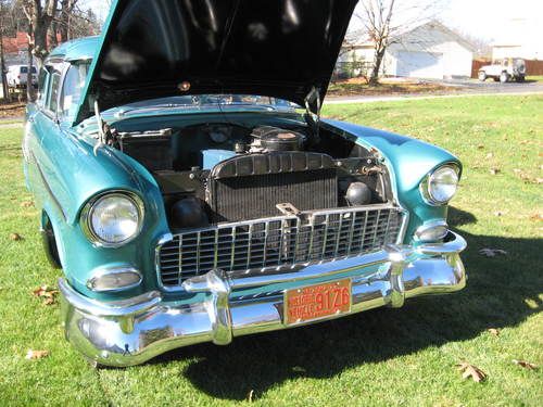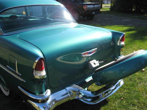 Originally sold by Brown Chevrolet in Brownstown, Indiana to Lucinda Stuckwish, this is a very well optioned 55 Chevy and is believed to be one of the lowest mileage 55 Chevys in the world. The options include: Power Brakes, Powerglide, Parking Brake Light, Wonderbar Radio, Electric Clock, Lighted Compass, Outside Sunvisor, View Finder, Spot Light, Colored Floor Mats, Fender Guards, Bumper Guards, Tissue Dispenser, Continental Kit, Gas Door Guard, Grill Guard, Door Edge Guards, Window Shades, Rocker Moldings, Door Handle Guards, Chrome Exhaust Extention and Front Splash Shields. In March of 1982 the car was featured in Classic Chevy World magazine ( a copy comes with the car ) and at one time was sold thru the Kruse International/ Ebay.com auction company ( window card from the auction included with car ). Also included are the original owners manual and title and registration applications from a previous owner in AZ. The car really speaks for itself. I believe you would be hard pressed to find a more original well optioned car. Please feel free to ask questions or call to make arrangements to see the car in person. Al Bokma 814-837-9837