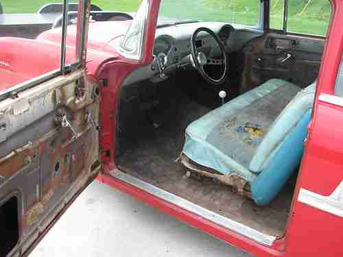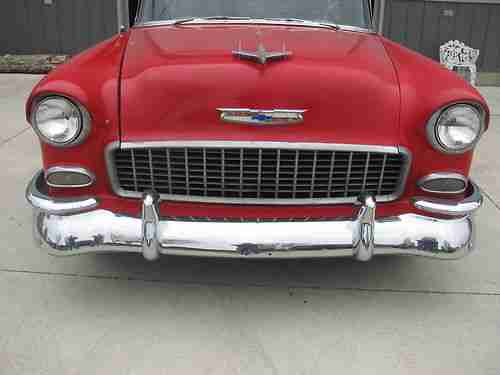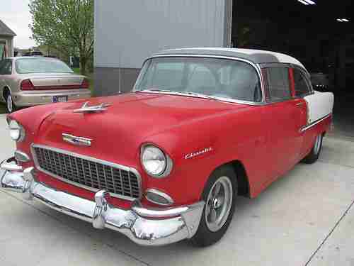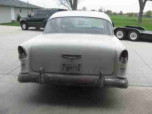 UP FOR SALE IS A 1955 CHEVY PROJECT THAT HAS A SMALL BLOCK CHEVY THAT NEEDS REBUILT AND A *** GOOD T/10 BORG WARNER 4 SPEED**. THIS 55 HAS GOOD GLASS THAT GOES UP AND DOWN WITH EASE, ELECTRIC WIPERS,GOOD REPAIRABLE SEATS, NO DOOR PANELS, SWAY BARS FRONT/ REAR, NEW TANK AND 3/8 LINE, NEW BATTERY CABLES FOR REAR MOUNT BATTERY, SOME BRAKES, GOOD STEERING, AND A NEW REAR BUMPER THAT IS NOT ON THE CAR. THERE IS SOME RUST UNDER THE CAR, DRIVER FLOOR, REAR CORNERS OF THE TRUNK AND A SMALL AMOUNT IN THE SPARE TIRE WELL IN TRUNK THAT I WILL SHOW IN THE PICS.THIS CAR IS FOR SALE LOCALLY FOR 10500.00. FOR BETTER RESPONSE PLEASE CALL LEONARD AT 317 506 3330. THIS CAR IS SOLD AS IS NO WARRANTY, AGAIN FOR BEST RESULTS CALL ****LEONARD AT 317 506 3330**** THANKS AND GOOD LUCK!