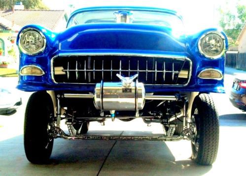 1955 Chevy Gasser , brand new . everything and every bolt in this car is new . trim , glass, rubber all. all chrome old school staright axel new king pins etc new drum brakes dual master. rear end is currie 411, 31 spline, best stuff they have. This car is a street legal show car all lights and gauges work perfect. . over 100k. This car was built by some of the best guys in the country. If you had a the wish list on a gasser this would be it. This will be a cover car for super Chevy mag , it has been at 4 shows and won every time . 620hp small block You can write a book on the motor with all the cool stuff done. , 4 speed .trans There is so so much on this car that if your Really ! interested in car I will provide details. Don't need to sell , Just finished and its perfect ,, I have other projects that Iam looking to do . I like to build cars I get bored easy. All the Galpin Gassers cars where mine and the people that own there are all still friends of mine and are very happy with cars ..youtube.com/watch?v=1OMsqZ2mStk&feature=youtu.be
