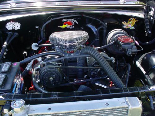 350 CU.IN. S/B CHEVY ENGINE AND 700-R4 AUTOMATIC TRANSMISSION. OFFENHOUSER 4-BARRL INTAKE. EDELBROCK 4-BARRL CARB;ALUM; RADIATOR.FLOW MASTER EXHAUST DUAL AIR BAG SUSPENSION ''FRONT & REAR' POWER 4-WHEEL DISC BRAKES VINTAGE AIR AND HEAT; FRENCHED HEADLIGHTS AND PARKING LIGHTS PACKARD STYLE TAIL-LIGHTS, IT HAS SHAVED DOOR HANDLES ''WITH POPPERS''