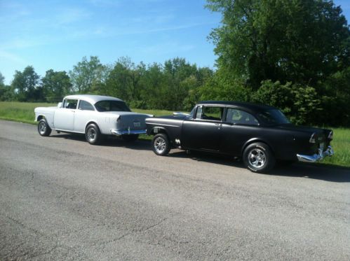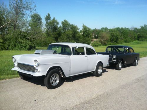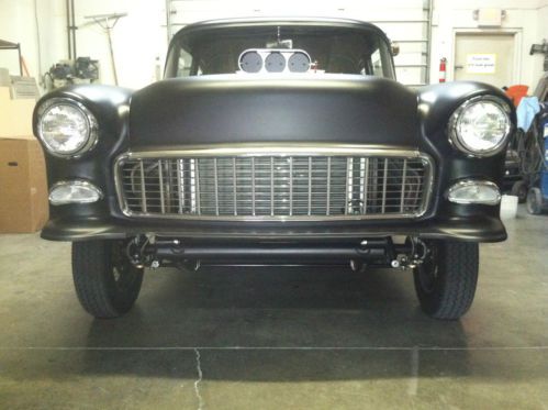 1955 Chevy Straight Axle Gasser build by Paradice Road Restoration finished Oct 2013. This is a fresh Off frame rotesserie build. This car was removed from frame,Media Blasted and required very little metal work. Body is a western car from Utah. The car has approx 500 miles on build. It features all steel flip front end with custom rear wheel radiuses.Car handles and rides Great. 496 cu. in. BB chevy solid lift 850 cfm Demon Carb Air gap aluminum intake Approx 640+ h.p. M21 4 spd transmission New built comp plus shifter (9" ford Currie rear end with 3:70 posi 31 spline axles) 4 wheel disc brakes w/ line lock 3 1/2" custom built driveshaft with solid u joints 2" lowering blocks in rear with custom ladder bars Custom front clip with straight axle disc brakes 4" drop 15x4 Rocket Launchers on front with Sportsman front runners 26x7.5x15 15x10 Rocket Injectors on rear with Hossier Radial Cheater slicks Racing seats with 5 pt. racing belts with custom mounts 4 pt custom roll bar with pads and covers New roll and pleat interior with sound dead insulation Am Fm Cd player,Tach,gauges and fire exstinguisher All new glass, rubbers, whiskers Semi Gloss Urethane paint All steel one piece flip front end Aluminum cross flow radiator Gilmer 1 1/2" belt system This car drives as good as it looks for more info call Jerry @ 859-396-8634 or visit web-site for more pics paradiceroad.com Ask about the new build under construction now FOR SALE