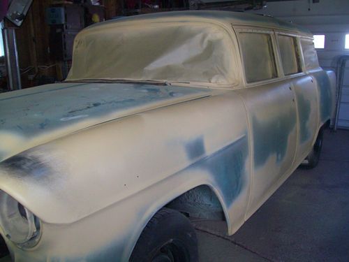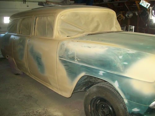 VERY LOW RESERVE MUST SELL 1955 chevy 4 door wagon my loss is your gain . ALL NEW E-Z WIRING KIT INSTALLED AND EVERYTHING WORKING ,355 SMALL BLOCK BRAND NEW NO MI. ONLY STARTUP /350 AUTO WITH LOCAR SHIFTER,NEW POWER BRAKES AND LINES, RECONDITIONED FUEL TAKE WITH NEW LINES, LOTS OF NEW (STILL IN PACKAGE) RUBBER SEALS ,DOOR HANDLES,WINDSHILD, LENSES(TAIL AND PARKING) NEW FLOOR PANS ,ROCKER PANELS ,BODYWORK DONE READY FOR BLOCK AND PAINT ,ALL BRAND NEW CUSTOM INTERIOR AND HEADLINER SEATS,AND CARPET ALREADY INSTALLED WITH BELAIR TRIM.ALL PAINTED PARTS FOR INSIDE ALL DONE AND WRAPED .I HAVE EVERY PC. OF TRIM FOR INSIDE AND OUT EXCEPT WINDOW FELTS INCLUDES EXTRA PCS., A LOT OF HOURS HAVE GONE INTO THIS TO MAKE RIGHT WITH LITTLE LEFT TO DO TO FINISH I WILL ALSO INCLUDE THE BASE PAINT TO MATCH WHAT ALREADY BEEN PAINTED
