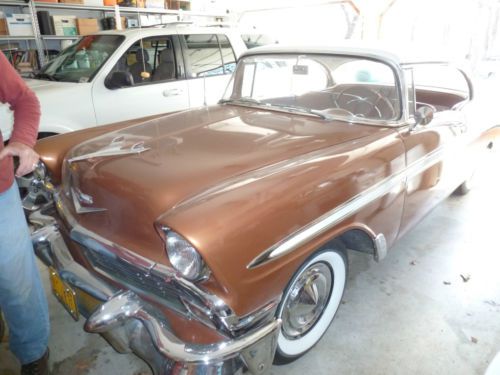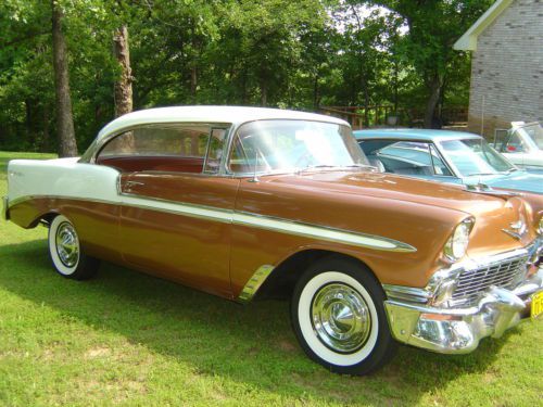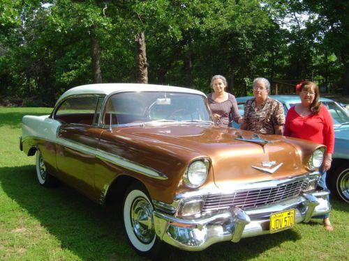 Fly in and drive it home.... like I did in 2009! I purchased this car in Riverside California, I flew in and drove it back on Route "66" after a quick stop in Tucson, AZ to visit family. While in Tucson Luna Industries rebuild and improved my generator by upping the amperage...due to a mounting bracket braking and shorting out. Lunaindustries.com has photos of my car taken by the owner and the story that goes with it.... check that out. As I mentioned, this is a LA factory, born and raised '56 Hardtop (see front license plate)... the car is extremely solid and restored by the previous owner. It has won local cruize night awards and car show awards since being here in Tulsa,OK. Growing up as a kid in the 60's I drove these old cars... and nothing I had back then drives like this car. It has Coker Radial tires... great ride. Improved shocks, and drives straight as an arrow with no vibration, hesitation, at any speed. It is the original numbers matching 265 V8 and 2 speed Powerglide... I have always kept it garaged and never driven it in the rain. The paint is a 8/9 out of 10... showing very few flaws... tires are perfect, brakes are perfect, motor and transmission are perfect. No drips, oil stains, or anything needing attention... The paint on the center of the steering wheel is showing a few small checks, and a few tiny, tiny chips on the nose, and by the tail light (fuel door)... This is not a 1000 point frame off restoration... but the price is more than fair, for the quality of this car... Note: The Mileage is not 12345... obviously. It now shows 8,000+.... but have no idea if it was rolled back at time or frame on restoration.... I am posting a lot of pictures and will post more if needed... Underneath the car is as clean as on top, and the trunk is flawless... Send someone to check it out... or pick up the phone and call me... "Jack" 918 346 3593