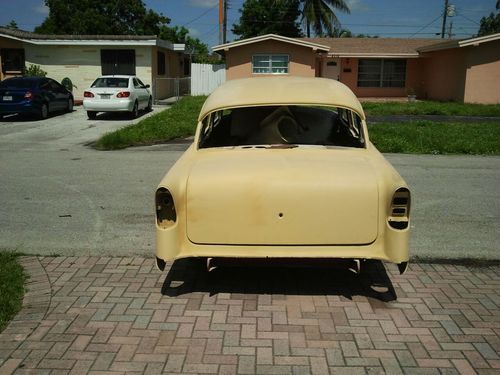 1956 Chevrolet 210. Just came out of the shop. All primer with California chassis. No transmission. No upholstery (seats only with springs). New floor panels. Fenders are not mounted but come with the car.