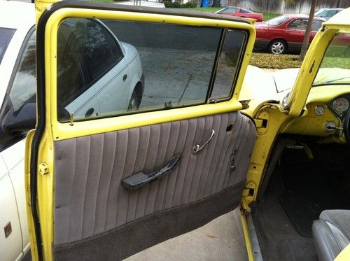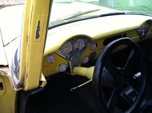 Looking to sell this great 56 Handyman. Recently pulled the car from storage and I've been working towards having it on the road for my own pleasure. I've come to a place where I have absolutely no time to continue working on it. If your looking for a classic car to have as a daily driver, this is the car for you. It's far from show quality, but it's a solid 20-footer. As it sits right now, it turns over, fires, and runs. The transmission was serviced before the car went into storage around 5 years ago and the rear axle is a late 80's GM 10bolt with a 3.73:1 gearset. There is a vacuum leak and as a result the car dies off below 1400 rpm. It has an MSD control box, coil, and distributor (vacuum advance), and all are brand new as of April 2013 as well as the water pump. It's pulling fuel through a Holley 600cfm carb with vacuum secondary and electric choke, rebuilt in April 2013. The car has an electric fuel pump in place of the mechanical and I've installed an OEM style fuel tank as the previous one needed replacing. The tank, sending unit, and mounting hardware are all brand new as of April 2013. The car is fitted with a 4-wheel power disc brake conversion kit from Classic Performance Products (CPP), and 2 inch drop spindles up front. The rear brake lines still need to be plumbed from the proportioning valve to the calipers; I have the remaining parts in storage to be included in sale. The rear lugs need adjustment; the company that installed them did a sorry job and there are some lug nuts that will not go on. There is an 18-circuit Painless wiring harness, unfortunately after a few years in storage there seems to be a draw on the system which I do not have the time to troubleshoot. The motor needs a tune-up; it burns some oil. The original gauge cluster was broken beyond repair, I've installed a set of Autometer gauges of the following types: MPH, RPM, Oil Pressure, Water Temp, Fuel, and Battery. The turn indicator switch needs to be replaced in order for the blinkers to be serviceable. The car is fitted with 2 bucket seats in the front and there is no back seat. The headliner is in perfect shape and the interior walls are upholstered with a simple gray tuck-n-roll. Tires are in good shape. All of the window mechanisms work, although not perfectly. The rear bumper had been removed before I purchased it and a rollpan was installed in its place. Car is missing trim bar spanning the forward edge of the hood.