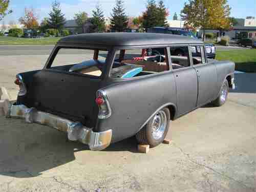 1956 CHEVROLET 210 4-DOOR STATION WAGON PROJECT CAR. CA. CAR. NO MOTOR OR TRANS, STOCK SEATS & HAVE ALL STAINLESS TRIM. CHASSIS RESTORED WITH 2' DROP SPINDLES/DISC BRAKES. NEW BRAKES, BUSHINGS, & SPINDLES. NEW COIL 7 LEAF SPRINGS. FRAME SANDBLASTED & PAINTED. SOLID BODY. NO RUST IN FLOOR, ROCKERS & BODY STIPPRED& IN PRIMER. NO. GLASS. LOST TITLE. SOLD ON BILL OF SALE.