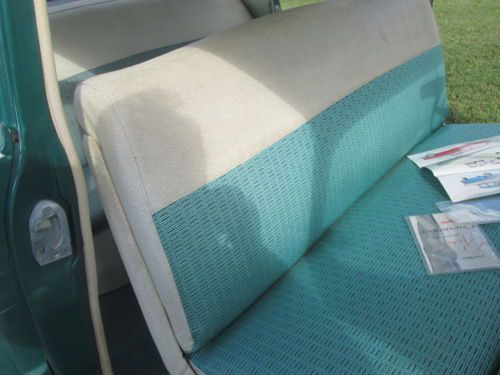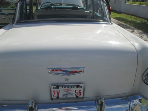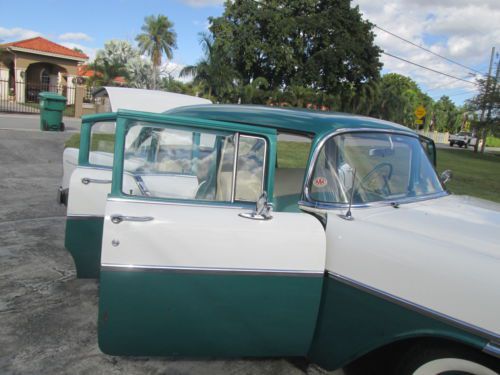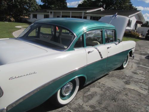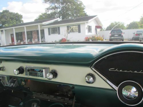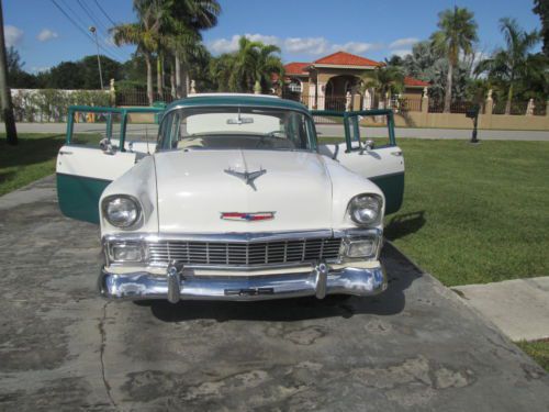 1956 Chevrolet 210 4 Doors Green & White 6 cylinders, Automatic. The mechanic is very good, starts and run the first time. This is a two owner car. It was kept always in a garage. The interior is beautiful, it has the original rubber carpet. Glass is very good & original. Doors close like the first day. The tires are like new, battery is new. Books and brochures on the glove compartment. It has 85,450 miles. The paint is 30 years old, it looks good at 10 feet. I went last week to West Palm Beach ( a trip around 300 miles ) and I did not have any problem. It did 23 miles a gallon. It has a clear title. Buyer needs to pay for the title tranfer and taxes. Buyer is responsable for the pickup or transport. Buyer needs to pay $300 thru paypal and the rest in 3 days. There is no refund, no return, no exchanges. Buyer needs to pay a deposit of $300.00 . This $300.00 deposit is non refundable. Buyer needs to pay the total amount for the vehicle in 3 days. Buyer will pay for title transfer and taxes. Buyer is responsible for vehicle pickup or the shipping charges. NOTE. PLEASE, IF YOU DO NOT HAVE MONEY TO PAY FOR THE VEHICLE, PLEASE, DO NOT MAKE A BID !!!!