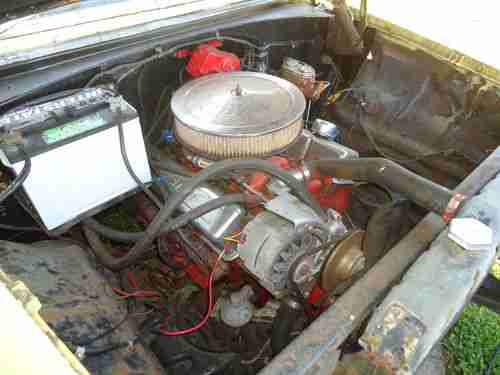 This is a mostly complete , running and driving car. It has a strong running small block. Previous owner told me it was an older 350 crate motor and Borg Warner super T10 4 speed. I have not verified either , but it runs very good and goes through all the gears and is very tight. Although I have driven it around my neighborhood , it really needs a complete restoration. Fuel tank has been cleaned and some brake lines have been replaced. Steering has a lot of play. I dont want to mislead anyone on the condition of this car , so please email all questions before bidding. Every panel needs some kind of repair or replacement. The floors and trunk have had some patches in the past. The front bumper , splash pan and lower grille support are removed , but i do have them. A previous owner cut the front bumper mounts off. I guess he was going for a gasser look. It was only about 5-6 inches and I do have them also. They could be welded back on very easily. Both door glass are broken and the windshield has some large rock shots , but not cracked. I have a clear Pennsylvania title and the car is available for inspection. Buyer is responsible for arranging and paying for shipping. Although it does run and drive , it can not be driven home. I may be able to assist in local delivery , but please verify before bidding. Being sold as is and it is for sale locally , so auction could end at anytime.
