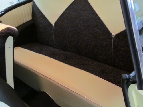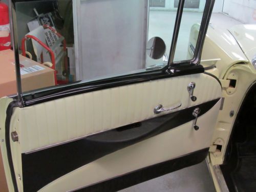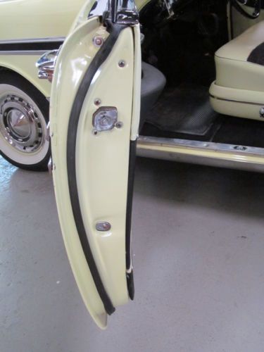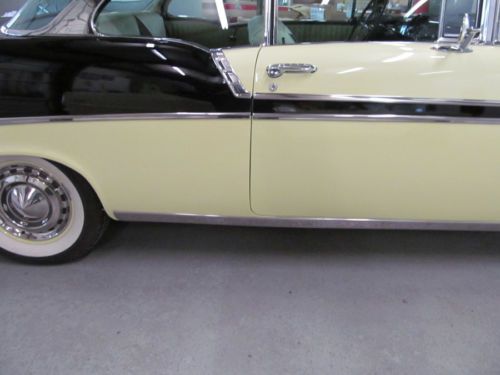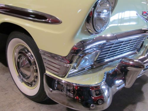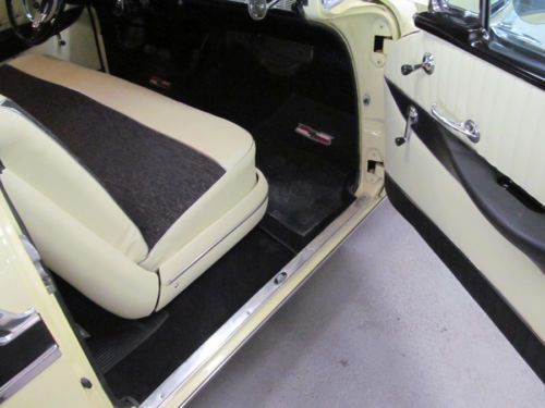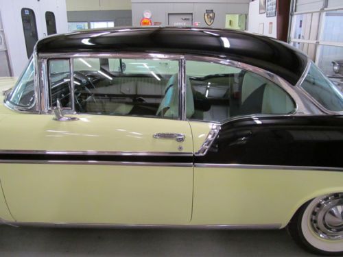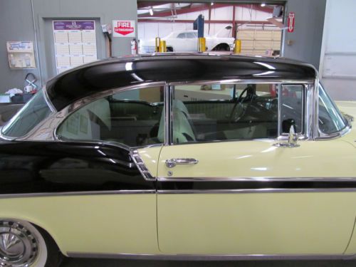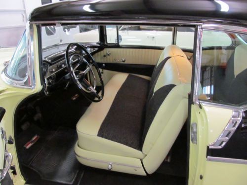 This beautiful '56 2 door hardtop has had a complete, frame off rotisserie restoration. The car is restored to original but is not a matching numbers car. It has a very solid and straight body. The two tone black and yellow paint is base coat, clear coat. The interior is correct color and style. All of the chrome and stainless is new or repolished and all glasses are new. It has a new 400 small block with a column shift 3 speed transmission that is fully synchronized. A lot of time was spent on the engine and engine compartment to make it look original. This car drives great and as you can see from the photos, the car has excellent eye appeal.
