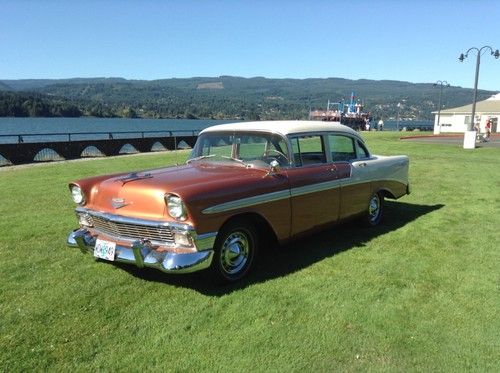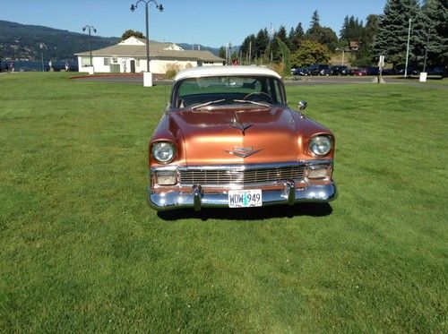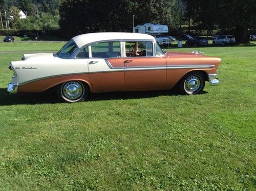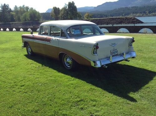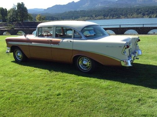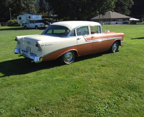 You are looking at a 1956 Chevrolet Bel Air 4 door sedan. It has the original 265 V-8 four barrel "Power Pack" engine and Powerglide transmission. We believe the mileage on the odometer is actual at 98,500! This car runs and drives really nice and is truly another great example of a West Coast Survivor!!! She's a real head turner!!!