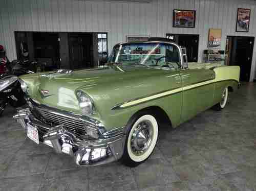 You are looking and an apsolutely perfect 56 chevy bel air convetible with a 265 V8 powerpack and a 2 speed powerglide auto transmission. The exterior and interior are all in perfect condition. The engine and the transmission work perfect as well. The only thing not original on the car are the front brakes, I had disk brakes put on it a number of years and but I have the original brakes for it. Was repaired 15 years ago. If there are any questions please call me at 2624967520 or 2626942000 my name is Keith or email me. I do have a transportation company lined up if its needed.