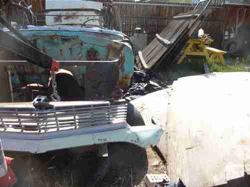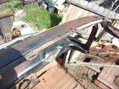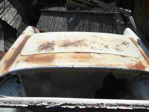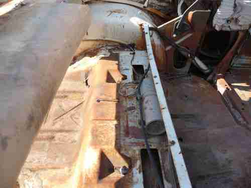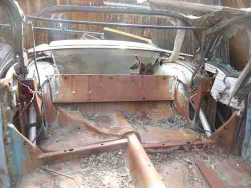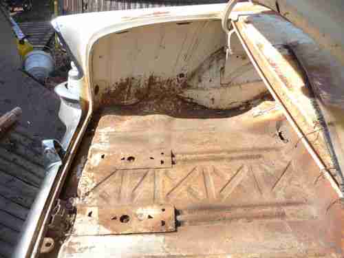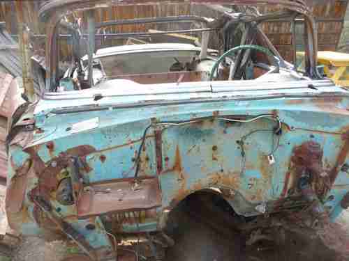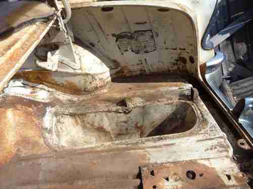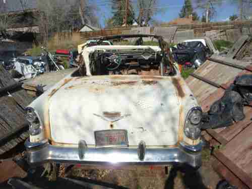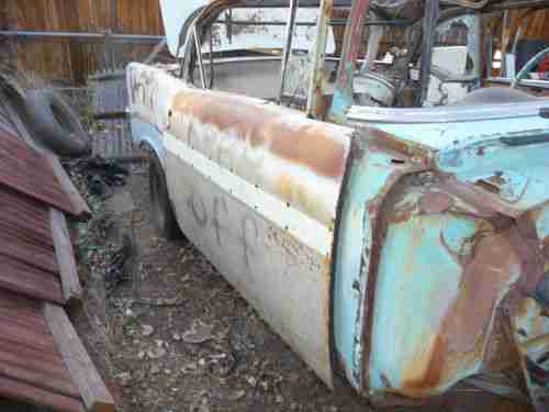 1956 CHEVROLET BEL AIR CONVERTIBLE, ORIGINALLY A V8 AUTOMATIC. ORIGINAL COLOR WAS TURQUOISE AND WHITE. BODY HAS TWO SMALL RUST HOLES,ONE IN THE TRUNK,AND ONE ON THE DRIVERS SIDE ROCKER PANEL, OTHERWISE RUST FREE. THIS CHEV WAS HIT ON THE PASSENGER SIDE,WHICH WRINKLED THE FLOOR PAN, MOSTLY ON THE PASSENGER SIDE, ALL DAMAGE VISIBLE ON PHOTOS. INCLUDED WITH THIS CAR ARE THE FOLLOWING:TWO FRONT RUST FREE FENDERS,FRONT BUMPER, A 265 V 8 BLOCK,PAN,TWO BARREL HEADS, INTAKE,CARB, AIR CLEANER,RADIATOR,QUARTER PANEL STAINLESS WITH PAINT DIVIDER,REAR END WITH DRUMS. FRAME IS A 55 OR 56 SEDAN,NOT A X-FRAME. NO WINDSHIELD MOULDING, NO SEATS. THIS CAR IS NOT A ROLLER, IT CAN BE SET UP TO ROLL BY A LOCAL TRI-FIVE SHOP. CALL FOR INFO.720-275-1840 THIS CAR IS ALSO FOR SALE LOCALLY, I WILL END THE AUCTION IF SOLD LOCALLY. THIS CAR WAS FROM NEW MEXICO,USA NO TITLE, BILL OF SALE ONLY. PAYMENT IN CASH OR BANK WIRE TRANSFER,$500 WITH-IN 24 HOURS, BALANCE WITH-IN 72 HOURS
