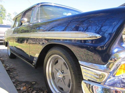 What's new: Vintage Heat/AC, PDB, 3.55 posi rear, suspension (rear leafs and shackles, front springs, ball joints, front sway bar) lowered 2" all around, detailed undercarriage with red oxide primer floors, 17x7 AR Salt Flat wheel/tire combo, lots of new chrome (way too much to list), liftgate professionally straightened and the torsion bars in the roof removed/gas struts installed to prevent future bowing, new windshield, door vents, and door glass. Padded dash, new dash trim, Raingear electric wipers/washer, Kick panel and rear seat speakers connected to an AM/FM/Ipod ready radio. Engine is now a SBC 350/TH350 combo (stock except the intake), Edelbrock triple-98 setup, March Polished Front Runner serpentine system, Pertronix Ignitor, 1 wire alternator, 4-core Desert Cooler radiator, electric fan, 2.5" Corvette Rams horns with a Flowmaster exhaust system and stainless tips, 58 Impala steering wheel, and an Ididit tilt shift column. Tons of new parts, and all receipts. A nice cruising Nomad and a multiple first place winner that's driven regularly. Not a trailer queen, as I drive it regularly. Clear TX title with no issues. Multiple first place wins last year including the Autorama in Houston.