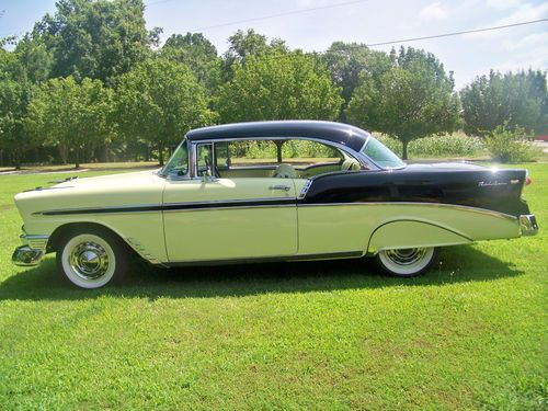This auction is for a 1956 Chevrolet Bel Air 2 Door Hard Top that has just had a recent frame off restoration. The vehicle was a rust free Southern vehicle before restoration and now looks like it has just been driven off the showroom floor. The restoration was performed by Willie Smith, owner of Smith's Body Shop in Belmont, Mississippi. For those of you who do not know Willie, he is known throughout Northeast Mississippi for his honesty, story telling and vehicle body repair. This vehicle was supposed to be a "keeper", but Willie decided to perform one more restoration on a 1956 Chevy convertible that is now well into the process. This vehicle has more than $60,000 invested including parts and labor. There will be a reserve on the bidding that is well below the investment. All original and OEM parts were used with the exception of a crate 350 engine, an AM-FM cassette and a new style alternator. Original 265 valve covers and breather were used to make the 350 look more original. It has a 3-speed on the column and B.F. Goodrich Silver Town radials. As I have mentioned, the vehicle looks showroom new as the attached photos will verify. If you need additional info, please contact Willie at 662-454-7731 (days) or 662-454-7178 (nights). Thank you for looking and good luck with your bid.
