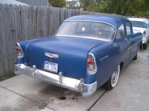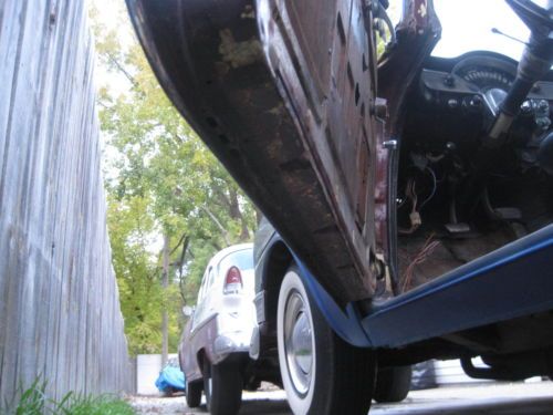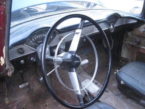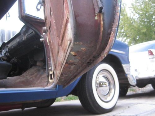 this '56 chevy is a really straight car. the outer body is virtually rust free and dent free, it has a chevy V-8 with a four spd trans, and original rear end. it runs and drives. the floor needs sheet metal repair as shown . it looks worse than it is, because it is just sheet metal . it needs a few things to get it totally roadworthy, it needs the front and rear wiring fixed for the lights, speedo fixed, i will weld in new floors and a trunk area for another $1000.00. its hard to find them this clean. its got new coker white walls, new radiator, headers, glass packs, i have the door pnls and new black loop carpet for it also. the outer body is pretty much rust free, the door bottoms are nice and solid as are the rockers and quarter panels, trunk is nice except for the patch some one welded in, gas tank is good. please call if you have any questions, the car is being sold locally so we reserve the right to end auction early, i can help with shipping arrangements. 586-944-8615. the vehical is sold in as is condition, but its a really neat car.thanks for looking. |