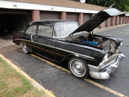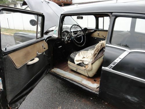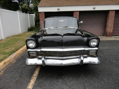 1956 chevy 2 dr,This is a running driving car that runs great, doesn,t smoke, has good oil pressure,trans shifts good all gears,good brakes,all lights work. The car needs body work and interior work.This car was a true barn find that was in a garage for twenty five years in PA. The title is a clear Pa title.Any questions give a call. 201-519-5625 Thanks ED