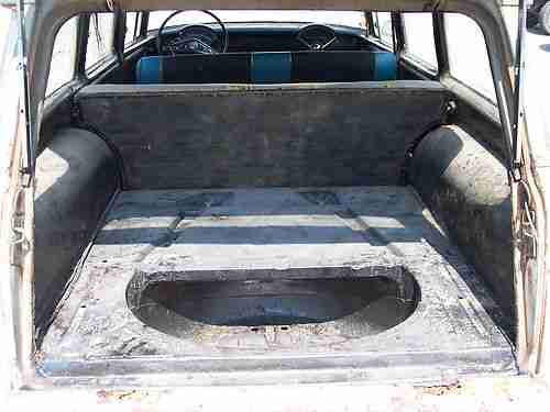 Here is a 56 wagon that I started to build to drive on Power Tour.But things have changed,so now its for sale.It's a 210 4-door with a pretty solid body,but it does have a few normal places with rust like most of these tri-fives have.The front suspension has 2 in dropped spindles,new disc brakes and all a-arms have been rebuilt.The rear end is out of an Olds Bravada and it has disc brakes.The eng is a 350 and everything in it is new.I have all receipts on eng.The trans is a 4L60 and it is fresh too.I have a new wiring harness that goes with car,but it is not installed.It also has an alum crossflow radiator.The exhaust was installed last week and I had the front end aligned as well.The wheels are 17 and 20 in REV's.They're new too.The gas tank and sending unit is from Danchuk.I have most of the side trim to go with car,but I am missing 2 pieces.The car runs good,brakes work great and drives well,but I have not had it out on a major highway because since there's no wiring,the lights are not hooked up.I'm sure I have forgotten something in my description,so please email with questions.It has a clear KY title in my name.I will accept PayPal,but I prefer cash when winning bidder picks up car.I do have the car for sale locally,so I do reserve the right to end auction at any time.Thanks for looking and good luck bidding.