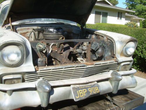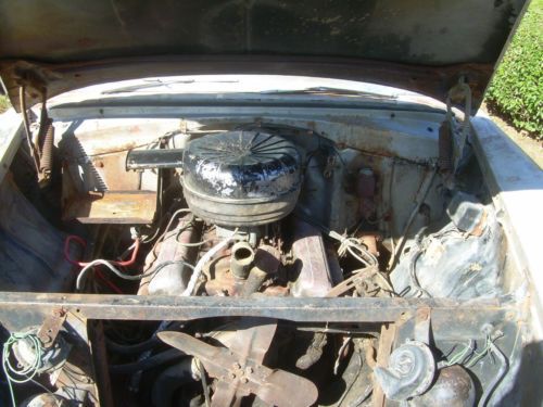 Great project car as there's no rust repairs to make. Just typical surface stuff and some small dents. Rare silver and white two tone scheme. Also has the optional bumpers front and rear plus a radio delete plate. 265 4bbl auto. Engine spins easily but has no spark, yet. I might mess with it and see if it will fire. As-is. No radiator or generator and missing a couple quarter emblems. I have lots of pics. Email me at Indy Winner at dslextreme DaWT komm. $4500. Overseas friendly too. I'm in So. Cal. and can deliver to your shipping company for gas money. Buyer pays all shipping.