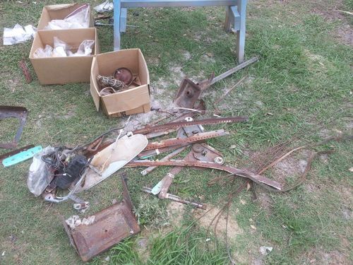 1956 Chevrolet Bel Air 4 door. I took this car in as a restoration that was started years ago and never completed. The car was completely taken apart and all parts were labled and bagged. I bolted a bunch of it back together just to see what all was included or missing. The body is very solid. It was sandblasted and etch primed but some surface rust was coming through so I reprimed it. Needs outer rocker panels, 2 front floor pans and some other minor patches here and there. The rear floor, trunk floor, trunk lid, doors, hood, fenders, and quarters are all very solid and just need some minor work. Everything pictured is included. There are a few boxes of tagged parts including all of the window regulators, wiring, etc. As far as I can figure, missing parts include....windshield, engine, tranny, steering column, and probably some small stuff here and there. The stainless trim is all very nice. No major dings or deep scratches. They all still have a label on them as you can see in the pics. The car also has aftermarket sway bars front and rear, and all of the brakes look to have been rebuilt within the past few years. I will try my best to find a steering column and get it installed before the auction ends. Bid to win this car. No reserve! I have a clear title to this car in hand and ready to go. If you need more pics, or have any questions, give me a call at 570-299-1755. Feel free to shoot me an offer.