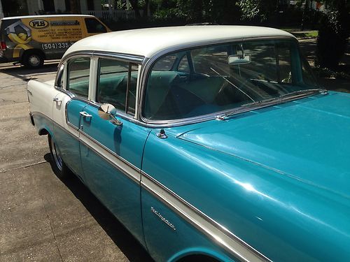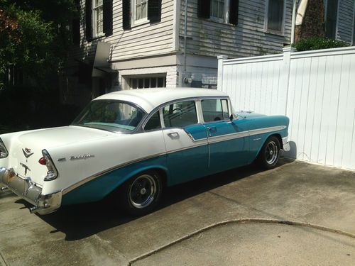 1956 Chevy Belair Restomod NO RESERVE V8, fuel injected, 700 r4 tranny, flowmaster dual exhaust, new fuel system, oil changed, sway bars, painless electrical harness, 6 disc changer, tape player w new sony explode speakers 4 months ago, Dukes of Hazzard Horn w 3 songs w remote, interior and exterior and engine bay led lights that change 6 colors w remote, these are incredible at car shows and drive in nights. This car starts every time with a v8 rumble from the dual exhaust. please also see the Cragar wheels in grey with new radial ta tires, upgraded brakes, original interior (needs love but w $1,000 it can be perfect and that is all this car needs!) The car has some rust as expected for 1956 such as some small bubbles in paint after 3 years of paint but nothing really coming through. some on bumpers and undercarriage but not too bad. I have used this car with my 3 boys on weekend drives and drive in nights. Everyone loves this car because it is such a looker in the right colors! it can fit the whole family for fun rides. this car turns more heads than a Ferrari. it will cost you @800.00 to have it shipped anywhere in the US according to ebay shipping companies. car comes with clean title as well as tons of paperwork for purchases and upgrades. As of now I am into this car over $13,000. I hope I get that but if I do not it is your gain. This is a sweet driver, and from 15 feet she is a show queen! I even rented it to the movie industry several times. It will be in an upcoming seth rogan movie filmed down here (thought you should know since it is cool info). this car is great because you will not lose money. there are just not many around and at a good price you just cant lose. real fun and looks abound in this one. imagine driving with the 50s music on with the led lights at night honking that Dixie horn. everyone is looking! Bid Well friends this one is worth it........