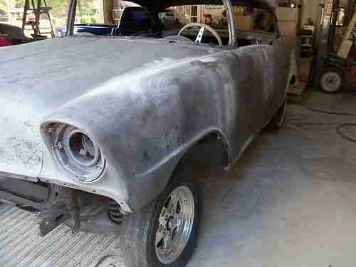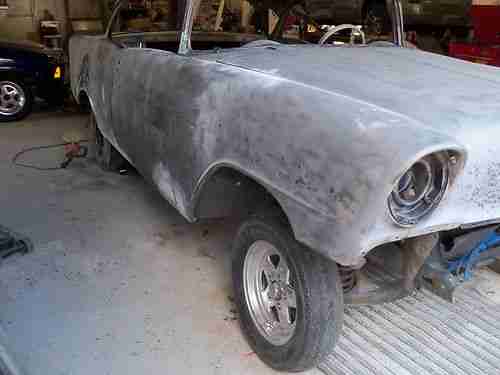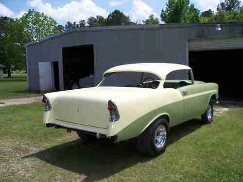 1956 chevy two door hard top gasser from the sixties, car was originally this green and cream white but was changed to black and white , and when we purchased the car it had been in a barn since 1972 . the car was completely stripped to bare metal, what little rust in the front floor pan we did find was removed and replaced with a new pan from danchuck. the stainless trim is in excellent shape but currently not installed. there are no seats with the car or glass as all the stock glass had been removed and discarded. the front suspension is stock type with the old school ball joint spacers and truck coil springs for lift, the rear is also the way it was with truck rear spring packs and shackle with the stock 56 housing. It still has the clutch pedal with the drive shaft loop still in the car as it was back then as well as the battry box from back then. We also have a 1967 427 or a Pilcher 482 and 4 speed trans that are available for seperate price from this auction. this auction is for this rolling chassis only ( no motor or trans included ). I reserve the right to end this auction early and the car is for sale locally. This car will be sold with a Alabama Bill of sale only, Alabama does not have titles for any vehicles pre 1975. If you have any questions on this car please call Bill or Scott at 334 677 5210 or 334 405 0509 or 850 569 1225 Thanks and have a blessed day........ Also have a uninstalled roll cage for this car.