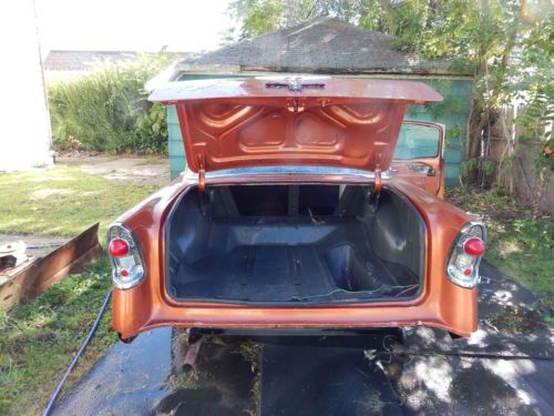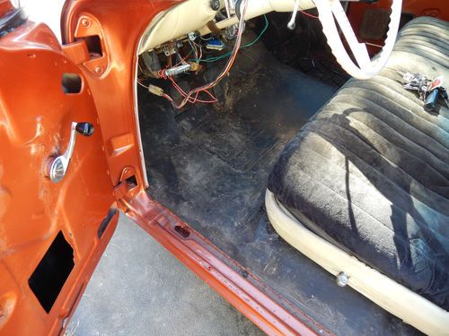 I DROVE THIS CAR FOR THE LAST YEAR UNTIL JUNE & IT DRIVES GREAT! MY VISION FOR THIS CAR WAS TO MAKE IT A HOT STREETROD USING A 383 STROKER ENGINE WITH A 700R4 AUTOMATIC TRANNY! I WAS GOING TO PULL OUT THE ORIGINAL ENGINE AND MAKE THIS CAR HOTT! I HAVE 13K INTO HER AND THE INTERIOR IS BEING STRIPPED TO BE WORKED ON! POWER BUCKET SEATS IN THE FRONT WITH A 12" LOKAR STICK SHIFT ON THE FLOOR! NEW TRIM AND BUMPERS ARE NEEDED BECAUSE THESE ARE TOO PITTED OR DINGED TO USE! ALL 8 SIDE WINDOWS ARE FACTORY TINTED BLUE-GREEN AS IS THE WINDSHIELD AND THE SIDE WINDOWS MATCH THE 4" VISOR ON THE BRAND NEW WINDSHIELD! I HAVE THE FRONT SEAT IN IT AND ALSO HAVE THE REAR SEAT SPRINGS STRIPPED & READY TO BE COVERED! THIS WOULD BE A NICE WINTER CAR AS I HAVE INSTALLED SO MANY NEW THINGS SUCH AS GLASS, FRONT AND REAR WINDSHIELD GASKETS, TRUNK GASKET, AND ALL 4 DOOR GASKETS! THE FLOOR IS DOWN TO METAL & WAS UNDERCOATED. I JUST BOUGHT THE PASSENGER SIDE RUBBER INSULATION BECAUSE IT COMES IN SECTIONS! BESIDES ALL THAT THE CAR HAS NEW OUTSIDE DOOR HANDLES AND LOCKS! A NEW TRUNK & GLOVE BOX LOCK AND KEY! I HAVE PAINTED THE ENGINE COMPARTMENT SHINY BLACK WITH THE INTENTIONS OF INSTALLING THE 383 BLACK IN COLOR WITH ALUMINUM OIL & TRANNY PAN GASKETS! THE 383 PUTS OUT 425HP! HOW'S THAT FOR PUSHING THIS CAR? I HAVE 13K INTO HER! THE WHITE PEARL AND BURNT ORANGE PAINT COST OVER 8 GRAND! IT HAS ALL NEW FRONT AND BACK LIGHTS INCLUDING PARKING & PLATE LIGHTS! I WAS ALSO UNDERCOATING THE FENDERS AND DOOR UNDERSIDES! THE CAR IS STRAIGHT AND TRUE AND I WAS GOING TO SELL THE ORIGINAL STRAIGHT 6 CYLINDER ENGINE AND TRANNY BECAUSE THIS CAR DESERVES A HOT MOTOR! IT HAS A NEW HOOD ORNAMENT & LOGOS! THIS CAR DRIVES AS IS RIGHT NOW & THIS IS WHY THE MOTOR AND TRANNY CAN BE SOLD! DUE TO A SLIPPED DISC I CAN NOT FINISH THIS BUILD & I HOPE SOMEONE REALIZES IT IS WELL WORTH A RESTORATION! NEW TRIM IS AVAILABLE IN CHROME OR STAINLESS STEEL! PLEASE ASK QUESTIONS AND MAKE AN OFFER!